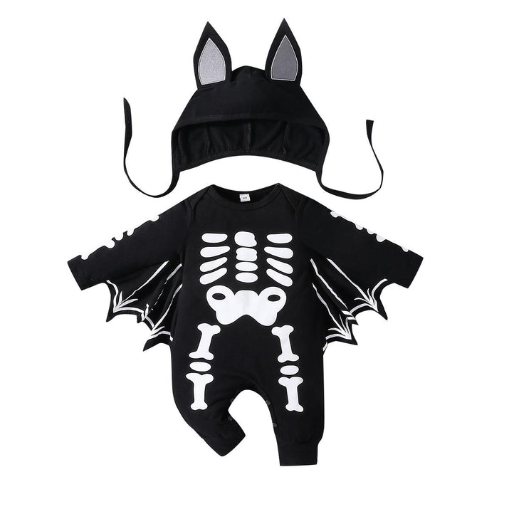 Get your little one Halloween-ready with this playful skeleton bat romper! Featuring bold bone prints, bat wings, and a hood with pointy ears, it’s both spooky and adorable. Made from soft, breathable fabric, it’s comfortable for all-day wear and easy to change with snap buttons. The perfect outfit for trick-or-treating, family photos, or festive dress-up fun.